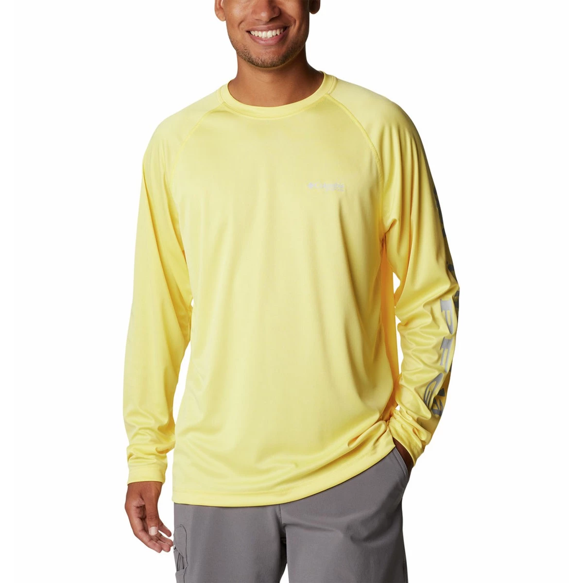 For performance and protection while fishing, try the Columbia PFG Terminal Tackle Men’s Long Sleeve Shirt. This men’s fishing shirt offers protection from the sun’s harmful rays as well as wicks away sweat and moisture keeping you feeling dry and comfortable. Plus, the lightweight and breathable fabric makes sure you stay cool even on warm days. For a sporty style, this long-sleeved men’s fishing shirt features the Columbia brand name on the upper left chest and down the arm sleeve. Stay protected on the open water with the Columbia PFG Terminal Tackle Men’s Long Sleeve Shirt.